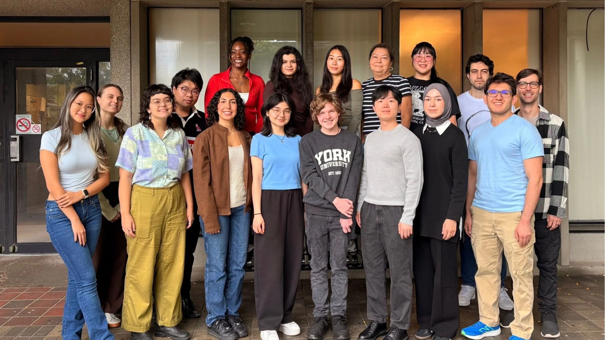 Back row (L-R): Jora Flora (Research Assistant), Courtney Chan (Graduate Student), Emily Bissada (Graduate Student), Kerry Kawakami (Principal Investigator), Zoe Fargnoli Brown (Graduate Student), Zhanyi (Cynthia) Huang (Research Assistant) | Middle row (L-R): Hannah Tran (Graduate Student), Shivam Desai (Research Assistant), Charlie Bo (Research Assistant), Harman Bajwa (Research Assistant), Parker Grant (Research Assistant), Miguel Gaspar (Research Assistant), Kaiwen (Kev) Zhou (Graduate Student), Afnan Musa (Independent Research Project Student) | Front row (L-R): Raquel Andary (Honours Thesis Student), Rita Bishara (Undergraduate Lab Manager), Ronda Lo (Affiliated Graduate Student), Elysia Vaccarino (Graduate Student) | Missing: Alyssa Drennan (Research Assistant), Hannah Mugford (Research Assistant), Robert Filipchuk (Research Assistant), Souela Sodrouddin (Research Assistant)